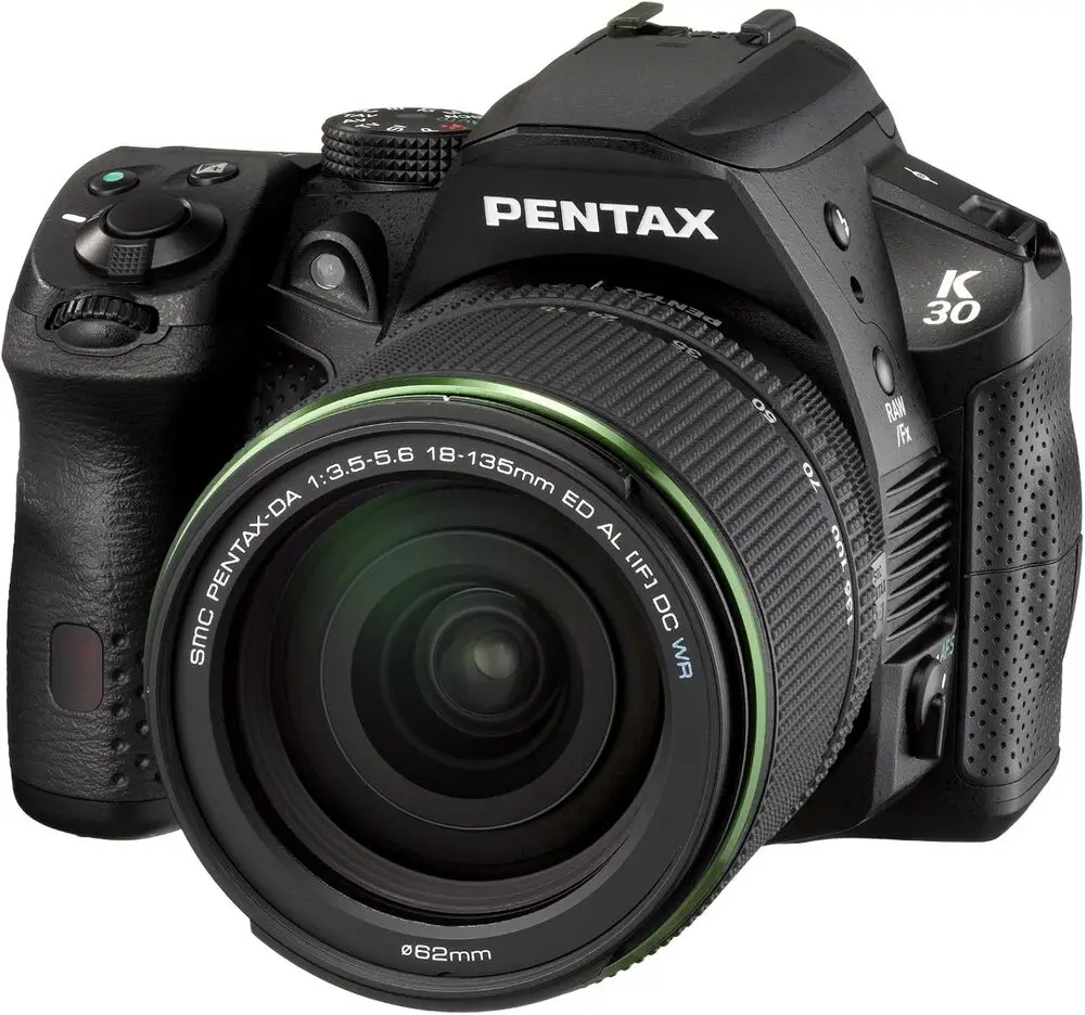 The Pentax K-30 is a rugged mid-range DSLR camera featuring a 16.3-megapixel APS-C CMOS sensor which provides high-resolution images with low noise levels.
