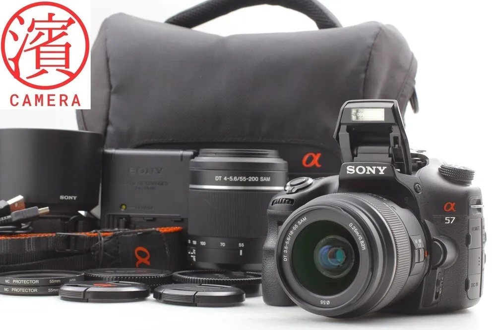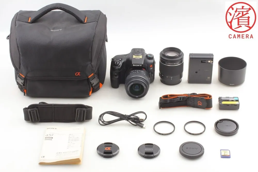 The Sony Alpha 57 is a digital single-lens reflex camera featuring a 16.1-megapixel APS-C CMOS sensor that delivers high-resolution images. It employs Sony's Translucent Mirror Technology (SLT) allowing for fast and continuous phase-detection autofocus during both stills and video shooting. The camera supports full HD 1080p video recording at multiple frame rates. It has an ISO range from 100 to 16000, enabling performance in varying lighting conditions. The 12 frames per second continuous shooting rate makes it suitable for capturing fast-moving subjects. Additionally, the camera includes a 2.7-inch tiltable LCD screen and an electronic viewfinder with 1.44 million dots for clear image preview.