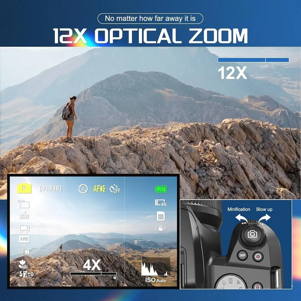 | Features | 12x Optical Zoom, 4K Video Recording, 72MP Photo, Built-in Flash, DSLR Camera, Image Stabilisation, Time Lapse, Wi-Fi, YouTube Mode |