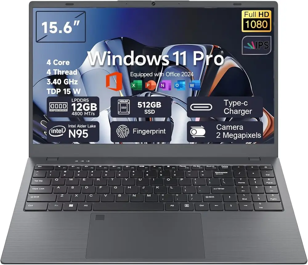 The Akocrsiy N95 offers exceptional portability due to its lightweight design, making it suitable for users on the move. Its energy-efficient processor extends battery longevity, supporting extended use without frequent recharging. The inclusion of SSD storage variants drastically improves system responsiveness and application load times. Additionally, the laptop supports a broad range of connectivity options, including HDMI output for external display connection. The keyboard is designed ergonomically for comfortable typing during prolonged use. Lastly, the laptop includes pre-installed essential software for productivity and basic multimedia functions.