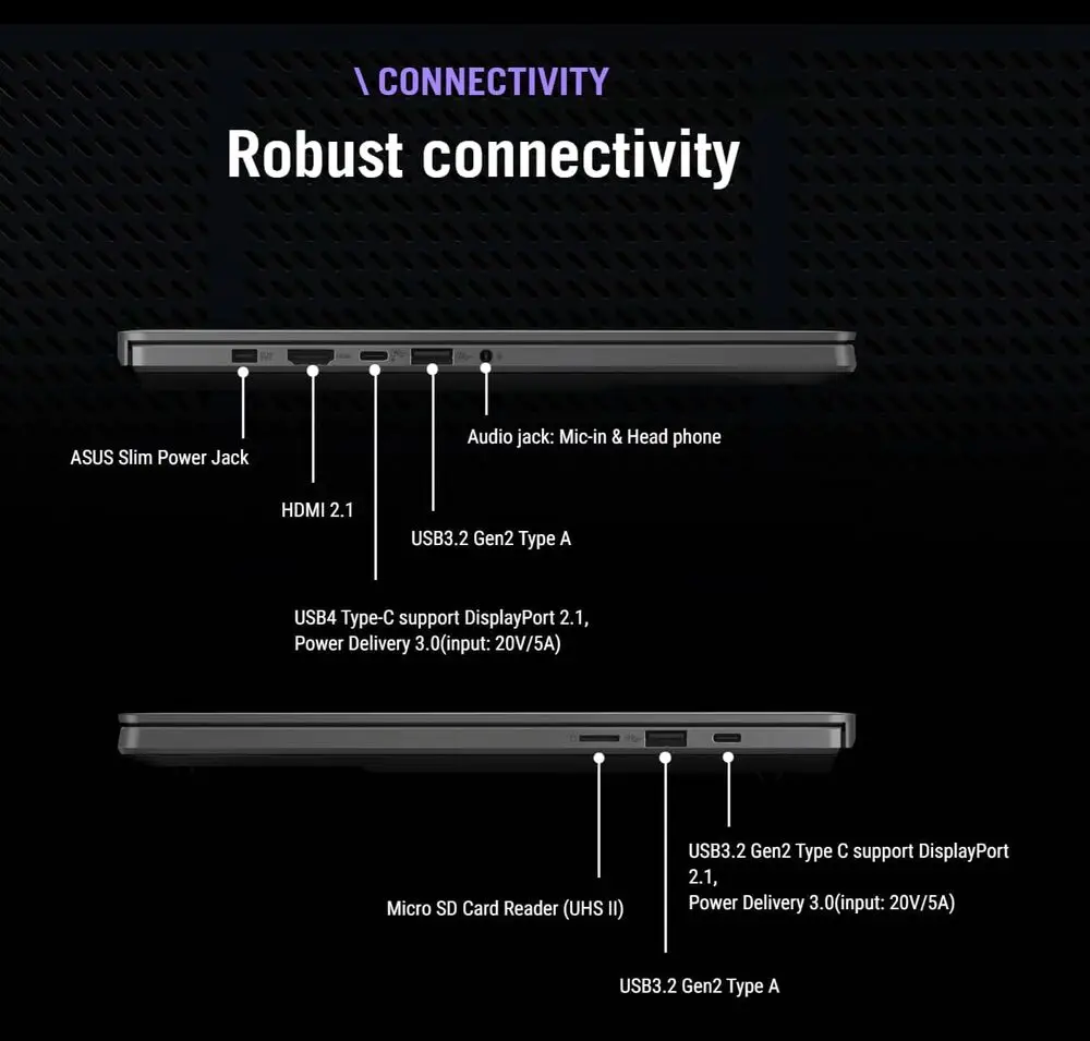 The ASUS ROG Zephyrus G14 2025 excels with its combination of high-end AMD Ryzen 9 CPU and NVIDIA RTX 4060 GPU, offering top-tier gaming and creative performance in a compact chassis. Its WQXGA display delivers excellent color accuracy and refresh rate suitable for competitive gaming. The integration of DDR5 RAM and PCIe 4.0 SSD technologies ensures fast data handling and responsiveness. Advanced cooling using liquid metal thermal paste keeps the device thermally efficient during prolonged gaming sessions. Port selection is diverse and modern, supporting connectivity with various peripherals and external displays. Furthermore, its lightweight and stylish magnesium-aluminum chassis provides portability without sacrificing durability.
