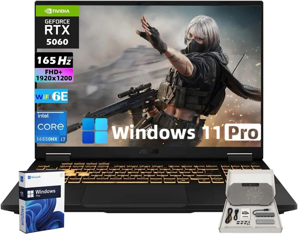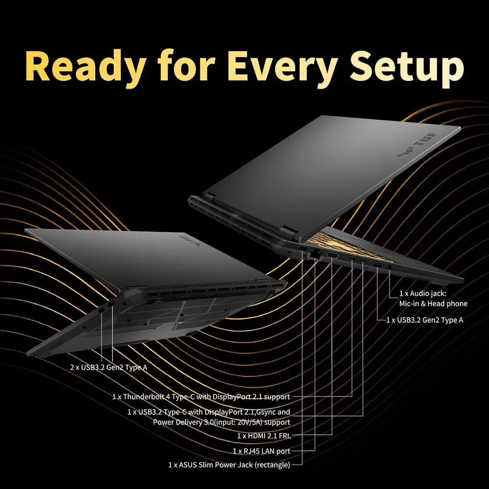 The ASUS TUF F16 Gaming Laptop 2025 model integrates advanced Intel or AMD processors optimized for gaming performance. It features a high-refresh-rate IPS display with Full HD resolution for smooth and immersive visuals. The device utilizes NVIDIA GeForce RTX graphics cards to handle intensive gaming and graphic design tasks efficiently. Its cooling system employs multiple heat pipes and dual fans designed for sustained performance during extended gaming sessions. The laptop supports PCIe Gen 4 SSD storage options ensuring rapid data transfer and quick game loading times. Connectivity includes Wi-Fi 6E, multiple USB Type-C and Type-A ports, along with HDMI 2.1 for external display support.