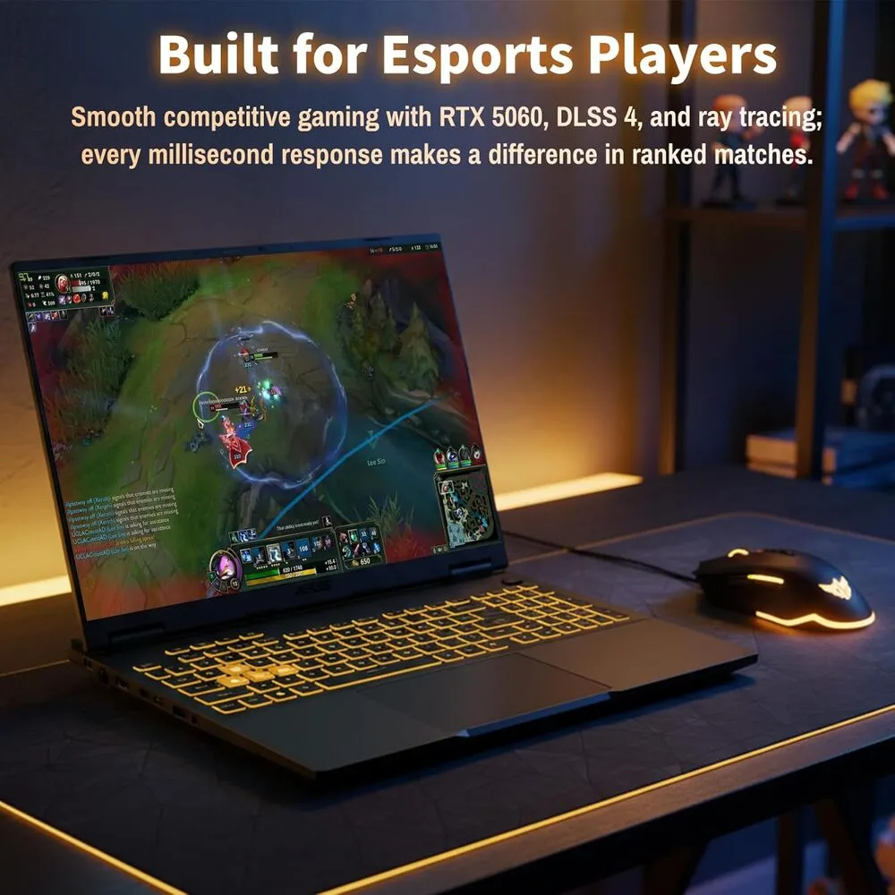 The ASUS TUF Gaming F16 stands out with its military-grade durability, meeting strict MIL-STD-810H standards to withstand shocks and spills. Its high-refresh-rate display (up to 144Hz) enhances gaming fluidity and responsiveness. The laptop includes a comprehensive cooling system for sustained performance without thermal throttling. It supports the latest Wi-Fi 6 technology, offering faster and more stable wireless connections. A full-sized RGB-backlit keyboard allows customization with excellent tactile feedback for gaming comfort. Additionally, its wide connectivity options, including USB Type-C and HDMI 2.0 ports, provide versatile expansion and multi-monitor support.