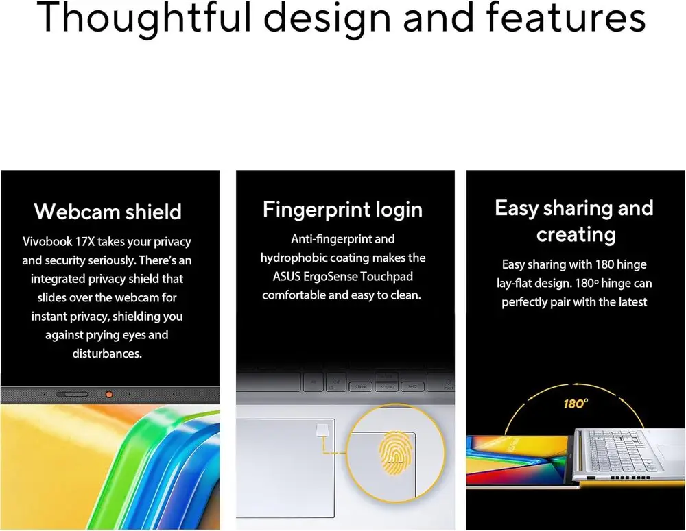 Despite its large display, the Vivobook 17X may have limited battery life compared to smaller, more portable laptops. The use of integrated graphics restricts performance for intensive gaming or heavy graphical work. It might lack advanced thermal management needed for prolonged high-performance tasks, potentially leading to thermal throttling. Limited availability of higher refresh rate screens may affect users accustomed to smoother display performance. The keyboard layout is standard and may not include advanced features such as per-key RGB lighting. Upgradability might be limited to RAM and storage, with other components soldered or inaccessible.