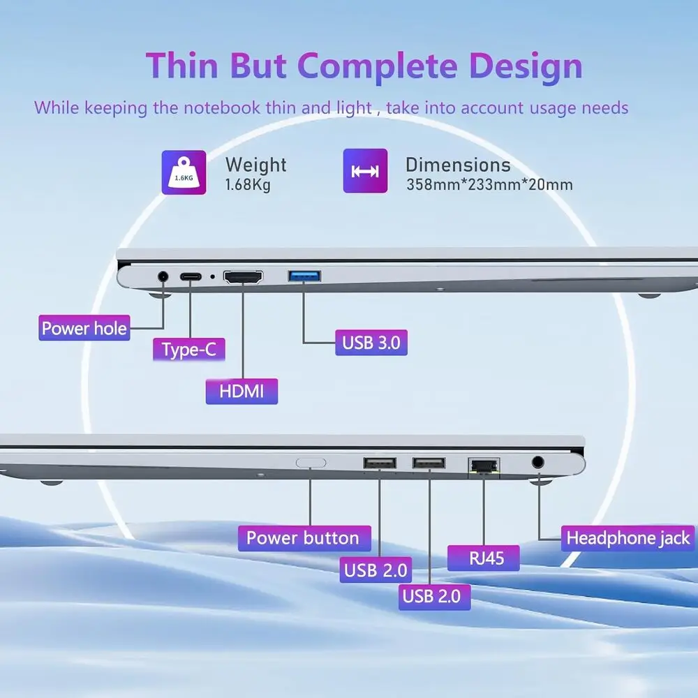 The AVENKA G3 stands out due to its lightweight design, enhancing portability and ease of transport. It offers affordable pricing, making it accessible to budget-conscious users and students. Battery life is optimized for moderate daily use, sufficient for typical office and home environments. The device supports a range of input/output ports, including USB and HDMI, increasing connectivity options. Its keyboard and touchpad are designed for comfortable everyday use. Additionally, the laptop's build quality balances durability with weight, providing a robust yet manageable device.