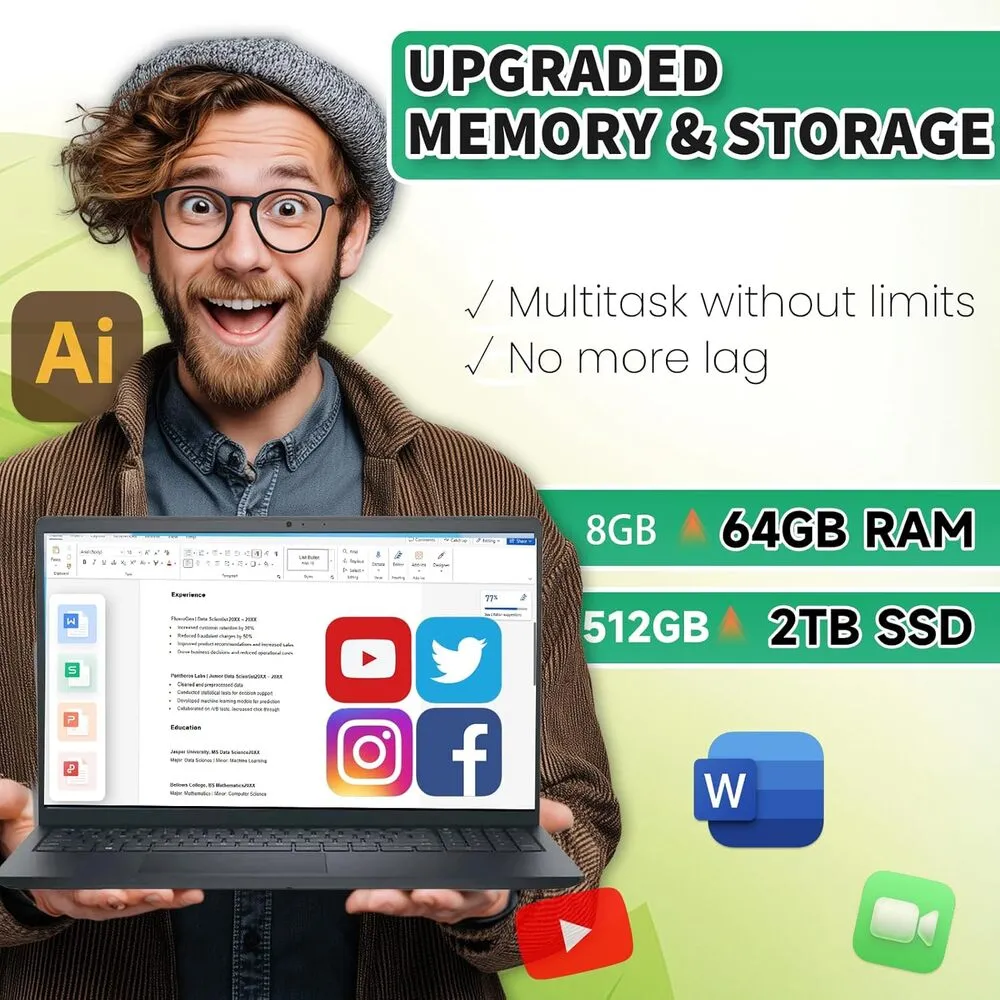 Upgradable RAM and storage provide flexibility for users to enhance performance and capacity over time.