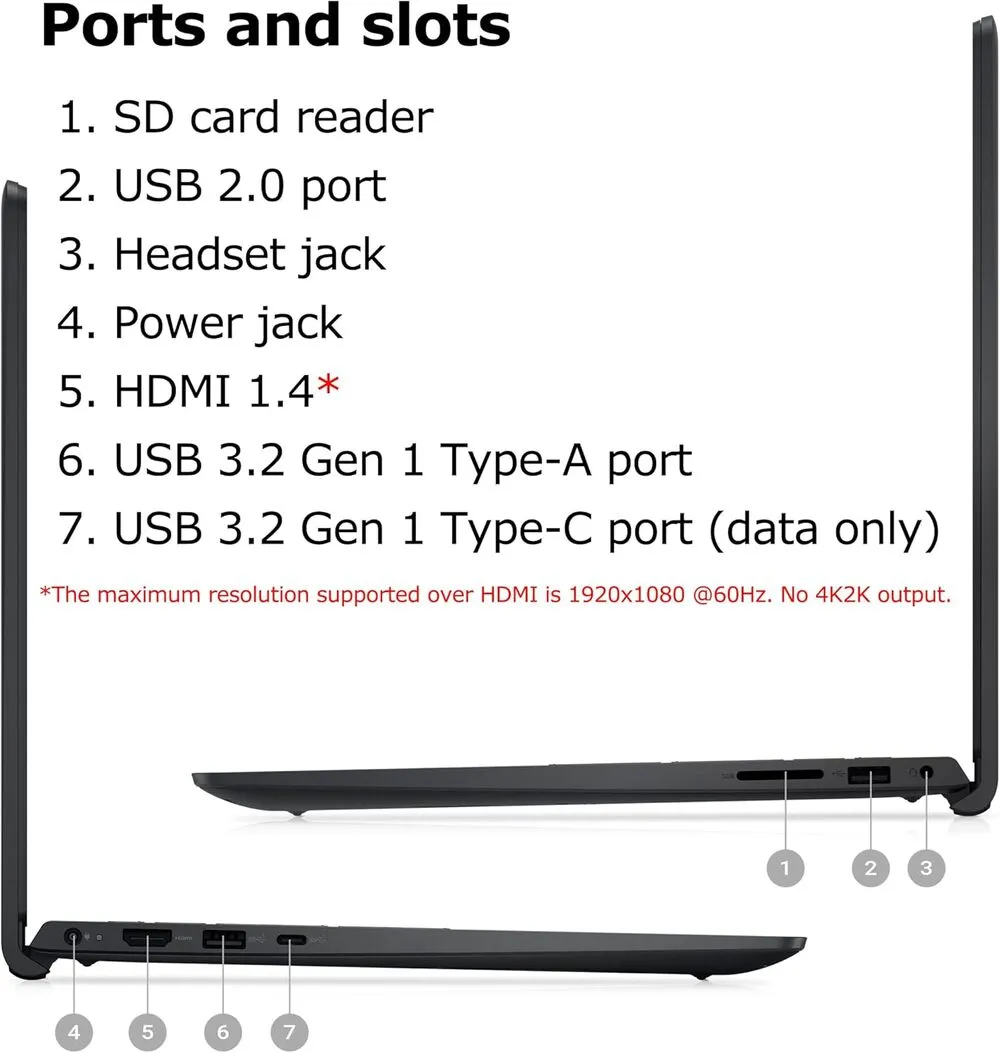 | Ports | 2 x USB 2.0, VGA, HDMI, SD card reader |
