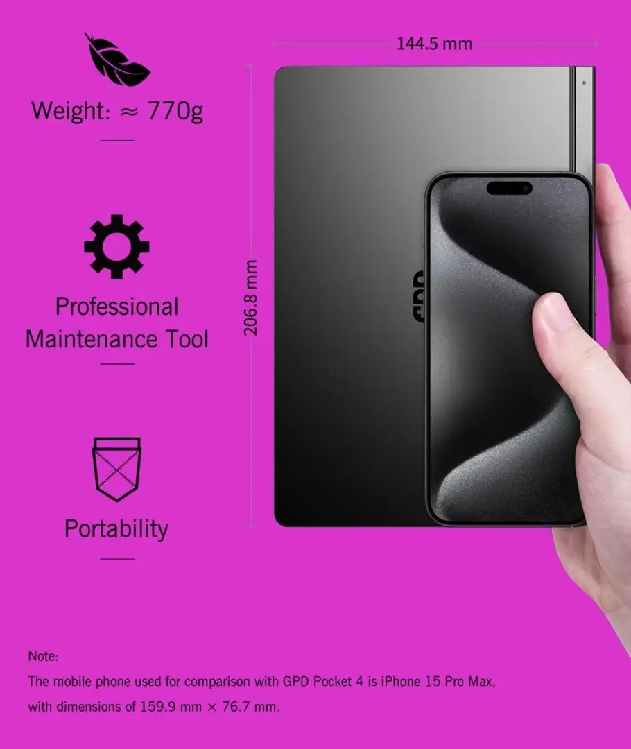 The GPD Pocket 4 offers exceptional portability with its small form factor, making it easy to carry and use anywhere. Its high-resolution touchscreen provides an intuitive and versatile user experience. The inclusion of an Intel Core i7 processor delivers robust performance in such a compact device. It supports a generous amount of RAM and speedy NVMe SSD storage, enhancing multitasking capabilities and responsiveness.