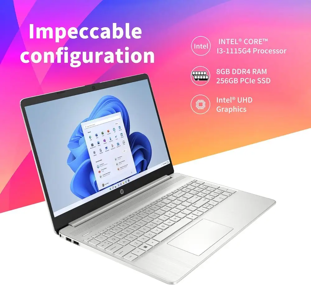 The HP 15 features a 15.6-inch display with options ranging from HD (1366x768) to Full HD (1920x1080) resolution.