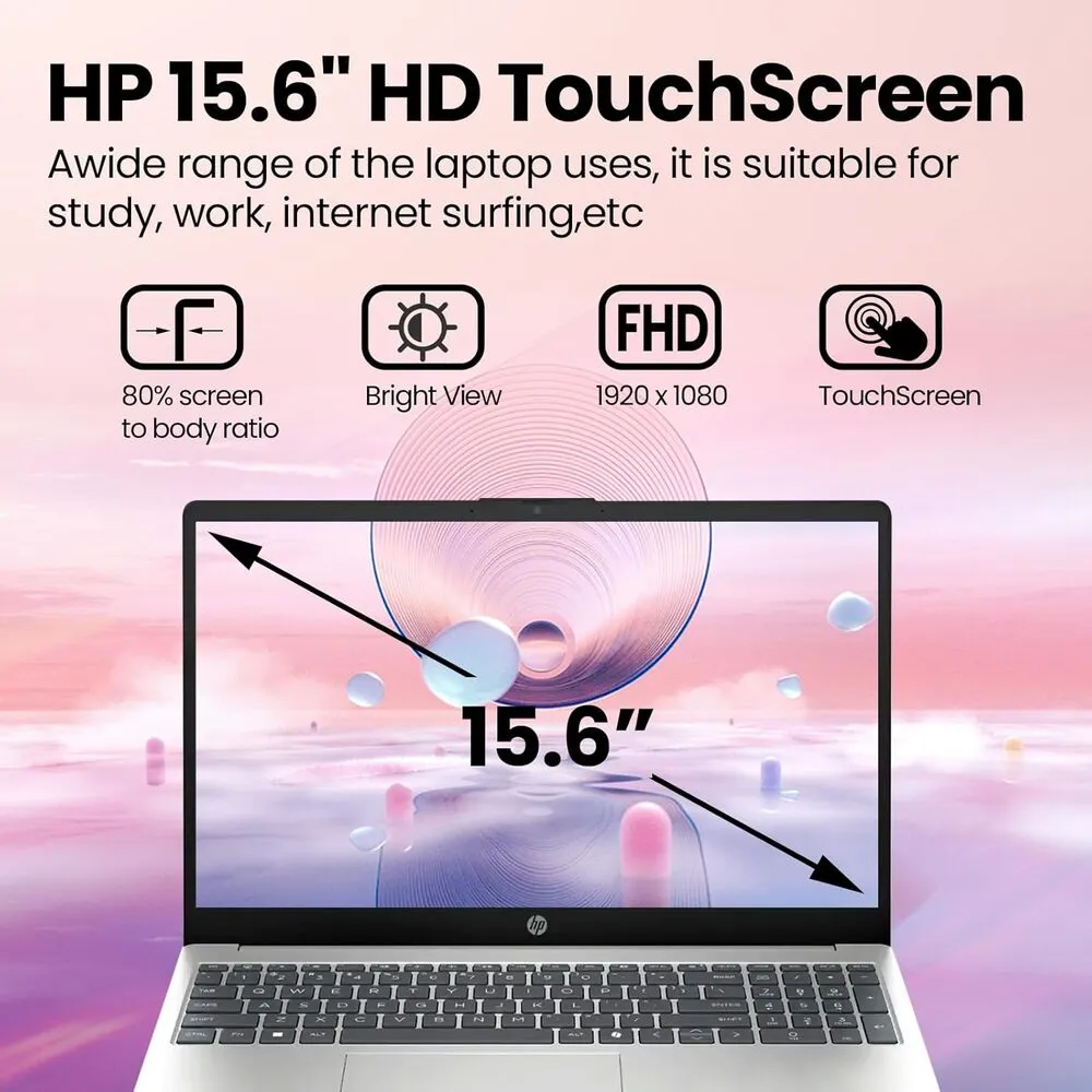 The HP 15 Touch Laptop is equipped with the Intel Core i7-1355U, a 12th Gen hybrid processor offering high efficiency and performance cores for multitasking and complex computations.