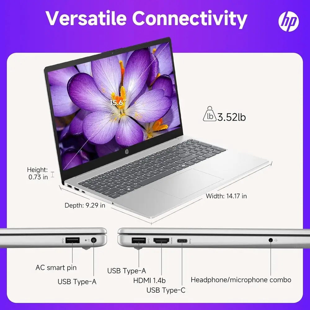 The HP 15-fd0127dx offers a crisp Full HD display enhancing viewing experience. Its efficient 8th generation Intel Core processor ensures decent multitasking performance. The laptop includes a robust array of ports, such as USB Type-C and HDMI, facilitating multiple peripheral connections. It features a full-sized keyboard with numeric keypad, improving typing comfort. The inclusion of a large-capacity 1TB hard drive caters well to users requiring extensive file storage. Additionally, it maintains a reasonably slim and lightweight chassis, promoting portability for daily use.