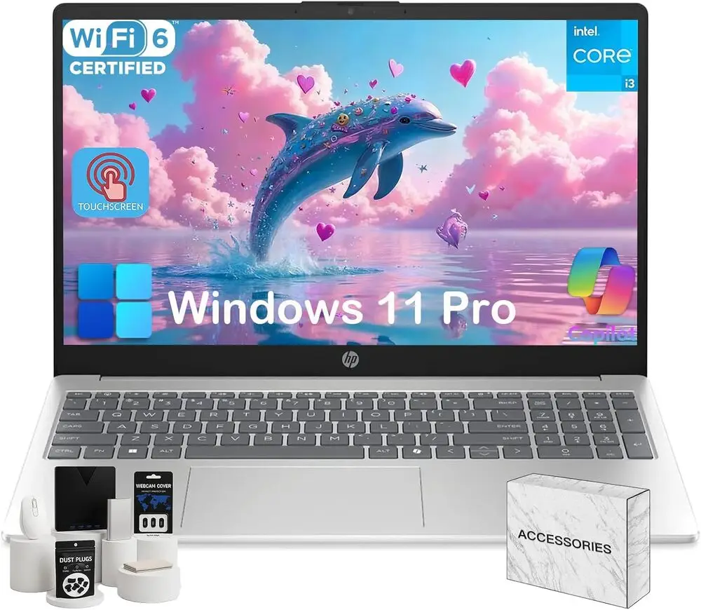 The HP 15.6 Touch Laptop features a 15.6-inch touchscreen display supporting multi-touch inputs, facilitating intuitive user interaction and improved productivity.
