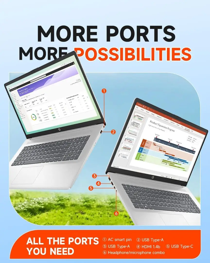 The HP 17.3 Touchscreen Laptop is engineered with a large 17.3-inch diagonal touchscreen display that supports multi-touch input for enhanced interactivity. It is commonly equipped with Intel or AMD processors designed to handle everyday computing tasks with ease. The device integrates DDR4 RAM, providing adequate memory bandwidth for multitasking and application performance. Storage options include traditional HDDs and faster SSDs, catering to different user needs for capacity and speed. Connectivity features consist of a variety of ports including USB Type-A, HDMI, and audio jacks, facilitating peripheral integrations. The laptop incorporates a dedicated graphics or integrated GPU, supporting multimedia and casual gaming experiences.