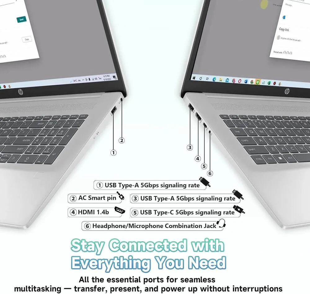The HP 2025 17.3 Laptop supports the latest Wi-Fi 6E standard to provide faster and more reliable wireless connectivity.