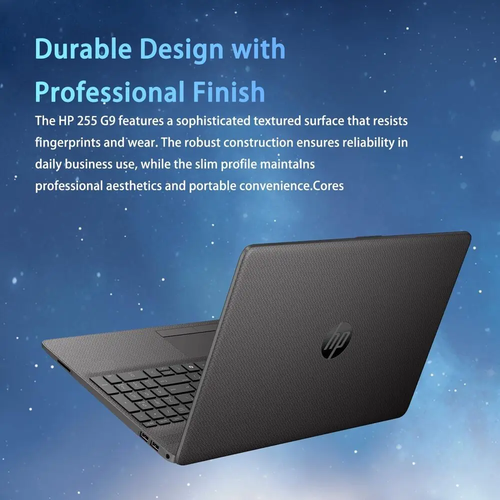 The chassis is slim and lightweight, optimized for portable use by business professionals. Its keyboard is spill-resistant with decent key travel for comfortable typing. Battery life extends to several hours to support mobile productivity. The HP 255 G9 supports standard Wi-Fi 5 or 6 depending on configuration for reliable wireless communication. Overall, this notebook balances cost-efficiency with essential business productivity needs.