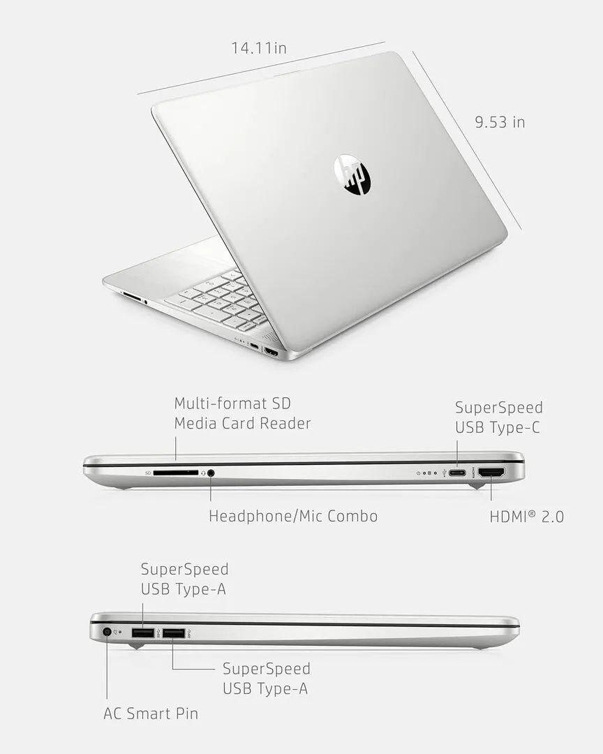 The HP Laptop 15-ef2024nr is equipped with the AMD Ryzen 3 5300U, a quad-core processor built on Zen 2 architecture offering excellent balance between performance and power efficiency.