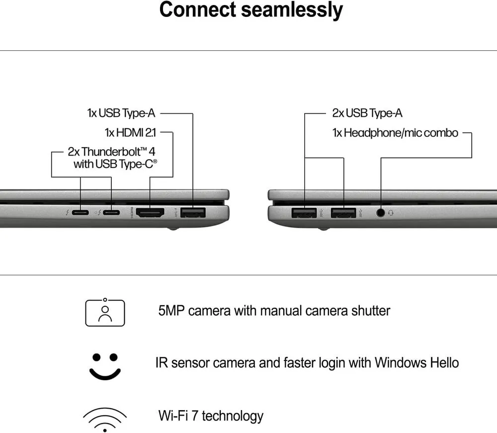 The model includes Wi-Fi and Bluetooth connectivity, though it may lack newer standards like Wi-Fi 6 or USB-C in certain versions.