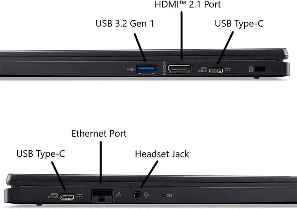 It includes multiple USB-C ports for charging and data transfer, Wi-Fi 6 for fast wireless internet, and Bluetooth support.
