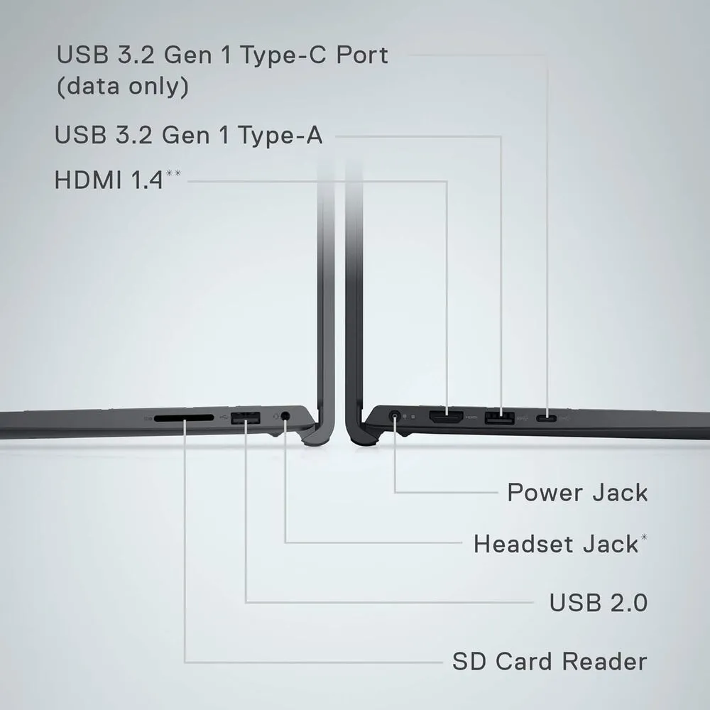 Comprehensive connectivity ports provide flexible device and peripheral support.