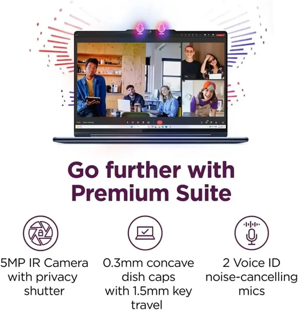 Advanced audio system with Dolby Atmos delivers superior sound quality for media playback and conferencing.