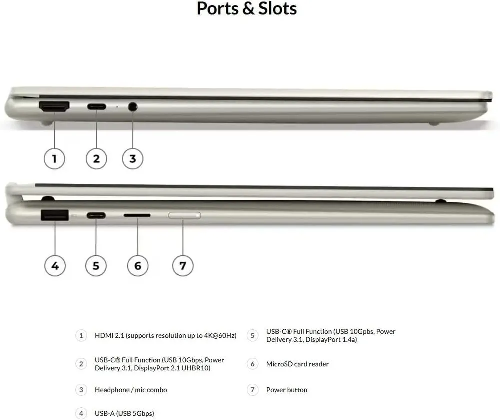 Being a 2-in-1 device, the laptop compromises on port variety and quantity compared to traditional clamshell laptops.