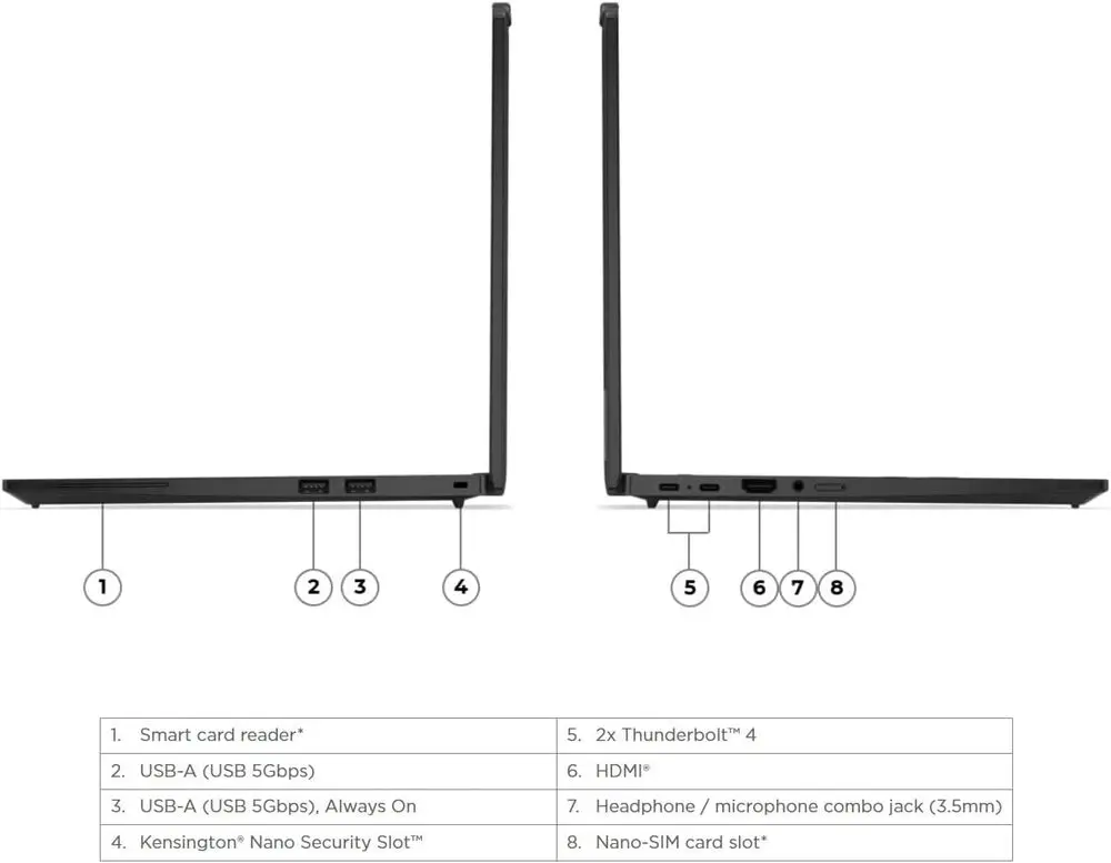 The Lenovo ThinkPad T14s Gen 5 is a high-performance business laptop designed with a focus on portability and power efficiency. It features the latest Intel 13th Generation Core processors, offering significant improvements in computational speed and multitasking capabilities. The device supports up to 32GB of DDR5 RAM, enhancing system responsiveness and running multiple applications simultaneously with ease. Equipped with a 14-inch IPS display available in Full HD and 2.8K resolutions, it ensures vivid visuals and wide viewing angles. Connectivity options include Wi-Fi 6E, Bluetooth 5.3, and a suite of ports such as USB-C with Thunderbolt 4 support, providing fast data transfer and peripheral connectivity. The device is engineered with a robust magnesium-aluminum chassis, emphasizing durability while maintaining a light weight suitable for professional mobility.