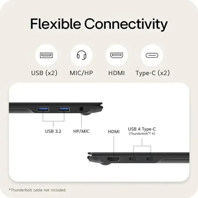 While the LG Gram 17 excels in many aspects, its integrated Intel Iris Plus Graphics may not suffice for heavy gaming or advanced 3D rendering tasks compared to dedicated GPUs. The laptop’s 17-inch size, although lightweight, may still be cumbersome for users seeking ultra-compact devices. Its price is relatively higher than smaller laptops with less premium features.
