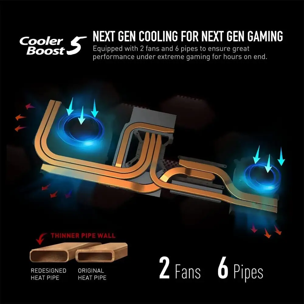 Cooling | MSI Cooler Boost 5 system with dual fans and 6 heat pipes |
