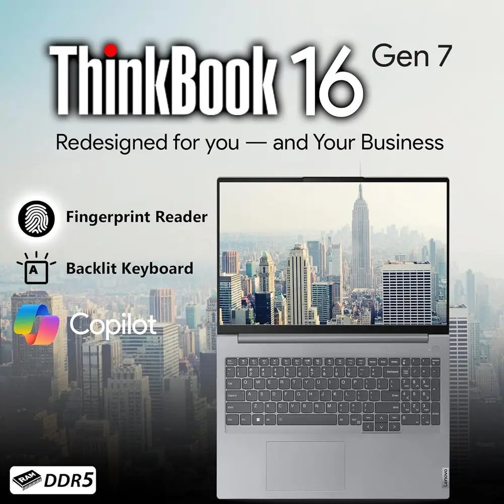 The ThinkBook 16 G7 is equipped with up to 11th generation Intel Core i7 processors, offering strong performance for business tasks.