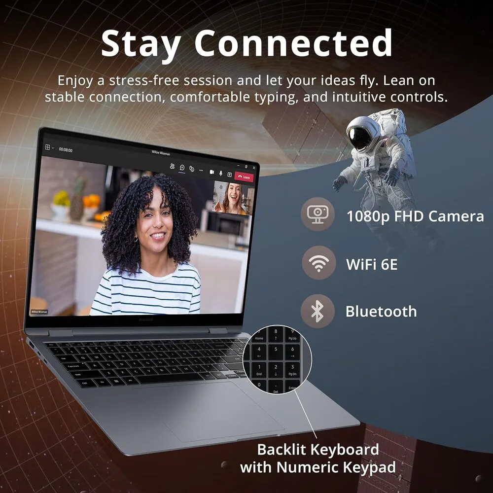 The Galaxy Book 4 Pro stands out due to its vibrant AMOLED display with high refresh rate, offering excellent visual clarity and color accuracy. Its powerful 13th Gen Intel processors and up to 32GB RAM enable smooth performance for both productivity and creative tasks. Ultra-fast NVMe SSD storage ensures quick boot times and application launches. Comprehensive connectivity options including Thunderbolt 4 and Wi-Fi 6E enhance data transfer speeds and networking capability. The laptop's design is notably thin and light, making it highly portable for users on the go. Enhanced security features such as fingerprint authentication add to user convenience and device protection.
