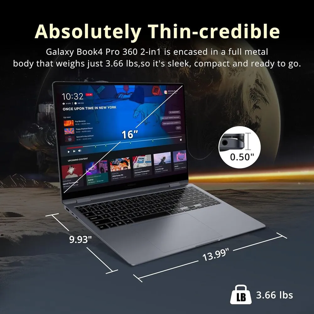 The high-end AMOLED display may have higher power consumption compared to traditional LCDs, potentially affecting battery longevity under heavy use. The larger 16-inch model is less portable than its smaller counterpart, which might be a concern for some users. While the integrated Intel Iris Xe graphics are capable, they are not suitable for high-end gaming or intensive graphical tasks. The maximum storage capacity tops at 1TB SSD, which might be limiting for users requiring extensive local storage. Pricing for the Galaxy Book 4 Pro tends to be on the premium side, which could restrict accessibility for budget-conscious buyers. Additionally, there is no discrete GPU option available, limiting performance in certain specialized workflows.