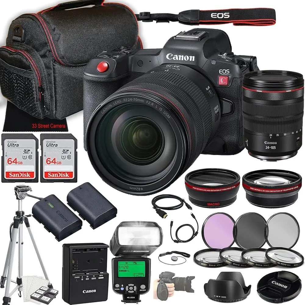 The Canon EOS R5 C integrates a full-frame 45MP CMOS sensor with dual DIGIC X processors, delivering advanced imaging for both stills and cinema. This mirrorless camera supports 8K RAW video recording at up to 60 fps, providing filmmakers with exceptional detail and color fidelity. With a reliable in-body image stabilization system, handheld shooting becomes highly stable, enhancing usability in dynamic conditions. The camera offers extensive connectivity options including HDMI output, USB-C, and Wi-Fi, allowing seamless integration into professional workflows. It combines the compactness of mirrorless technology with dedicated cinema features such as Canon Log 3 and high frame rate recording modes. The EOS R5 C supports interchangeable RF lenses, expanding creative possibilities for creators demanding versatility in photo and video capabilities.