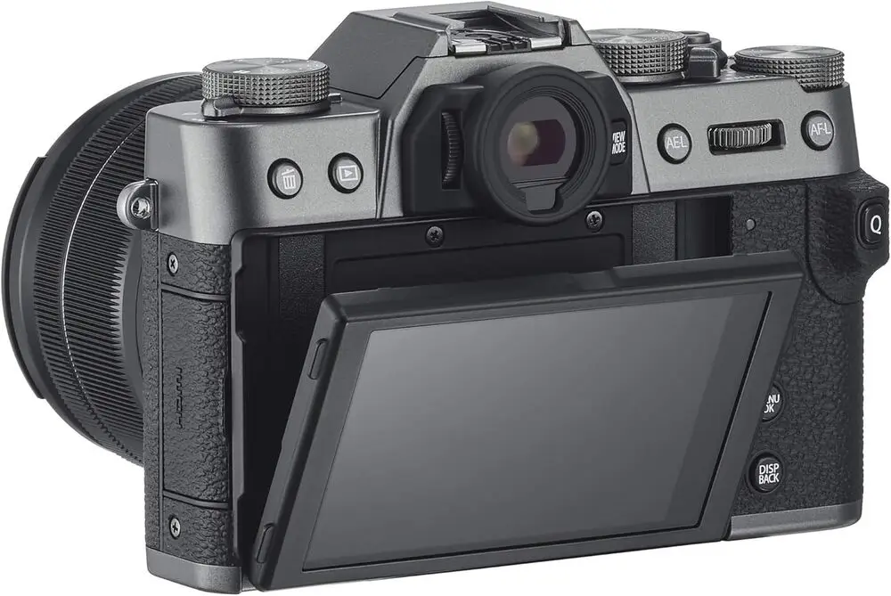 The Fujifilm X-T30 XF18-55MM Kit Dark Silver is a compact mirrorless camera that integrates a 26.1-megapixel APS-C X-Trans CMOS 4 sensor paired with the X-Processor 4 image processor for high-resolution image capture and rapid operation.
