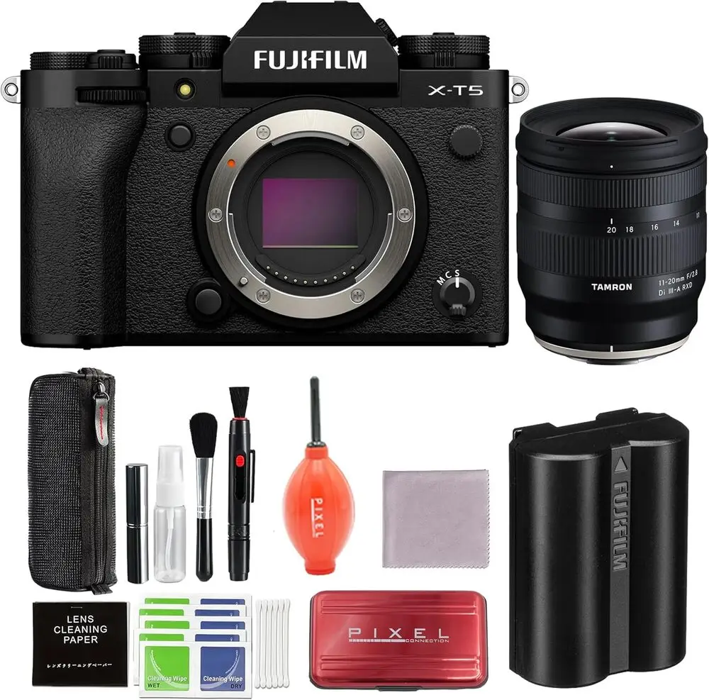The Fujifilm X-T5 offers outstanding image resolution and superior color reproduction thanks to its X-Trans sensor technology. The fast and accurate autofocus system with phase detection allows quick subject tracking and reliable focus acquisition. The combination with the Tamron 11-20mm f/2.8 lens provides excellent wide-angle coverage with bright aperture performance. Its robust weather-sealed body enhances durability for outdoor and challenging shooting conditions. The camera supports advanced video functions, appealing both to photographers and videographers. Integration with Fujifilm's extensive lens ecosystem and customizable controls makes this a versatile and professional-grade mirrorless camera setup.