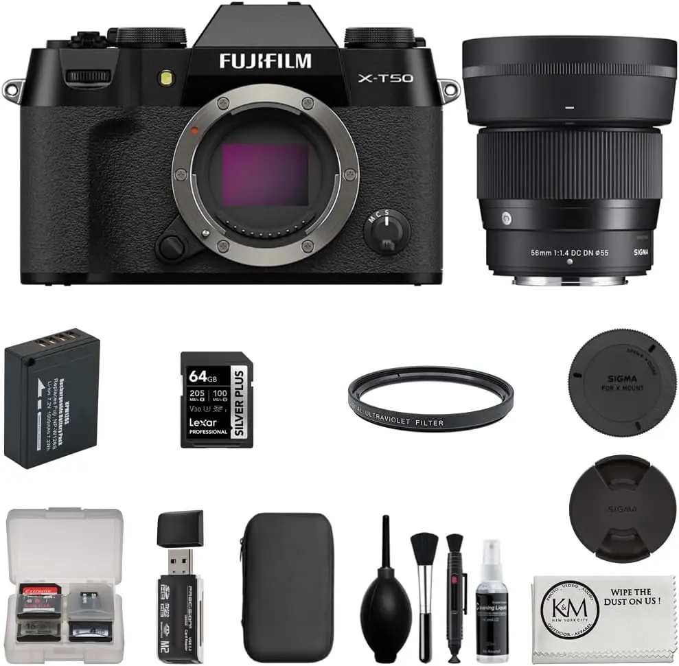 The X-T50 provides exceptional image quality thanks to its advanced sensor and processor combination. Its autofocus system is highly responsive and accurate, supporting eye detection for both humans and animals. The compact and lightweight body is ergonomically designed for comfortable handling. The camera excels in video with high-resolution 4K capabilities alongside 120fps slow-motion recording. The vari-angle touchscreen LCD enhances creative shooting angles and ease of use. Additionally, built-in wireless connectivity streamlines image transfer and remote operation.