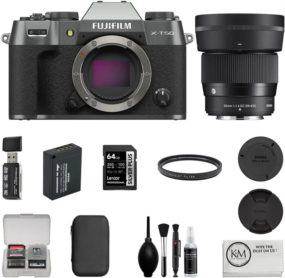 The X-T50 offers a high-resolution 26.1MP APS-C X-Trans CMOS 4 sensor that excels in low light and color accuracy. Its 4K video recording capability at 30fps provides excellent video quality for content creators. The Intelligent Hybrid autofocus system with face and eye detection ensures sharp focus in diverse shooting conditions. A fully articulating 3.0-inch touchscreen LCD enables flexible shooting angles and easy menu navigation. The inclusion of Wi-Fi and Bluetooth connectivity allows for quick image transfer and remote control via smartphone apps. Additionally, the compact, lightweight design makes it highly portable without sacrificing build quality.