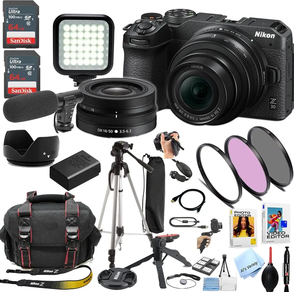 The Nikon Z30 is a compact, mirrorless camera designed primarily for vloggers and content creators, launched in 2022 as part of Nikon's Z series lineup. It features a 20.9-megapixel APS-C (DX) CMOS sensor that delivers high-resolution imagery with low noise. The camera operates on the Nikon Z mount, enabling compatibility with a wide range of Z-mount lenses, enhancing optical versatility.