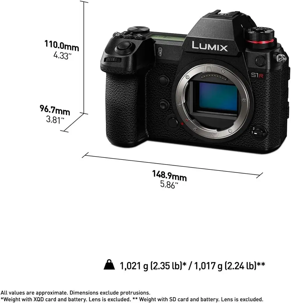 The Panasonic S1R features a 47.3-megapixel full-frame CMOS sensor designed for ultra-high-resolution imaging and superior detail reproduction. It employs the Venus Engine processor that supports high-speed image processing and enhanced noise reduction for excellent low-light performance. The camera offers a robust and weather-sealed magnesium alloy body ensuring durability and reliability in demanding environments. Its 5-axis in-body image stabilization compensates for camera shake, facilitating sharper handheld shots. The autofocus system combines contrast and depth-detection technologies to achieve accurate and fast focusing, suitable for diverse shooting scenarios. Additionally, the S1R supports 4K video recording and has a high-resolution OLED electronic viewfinder for precise composition.