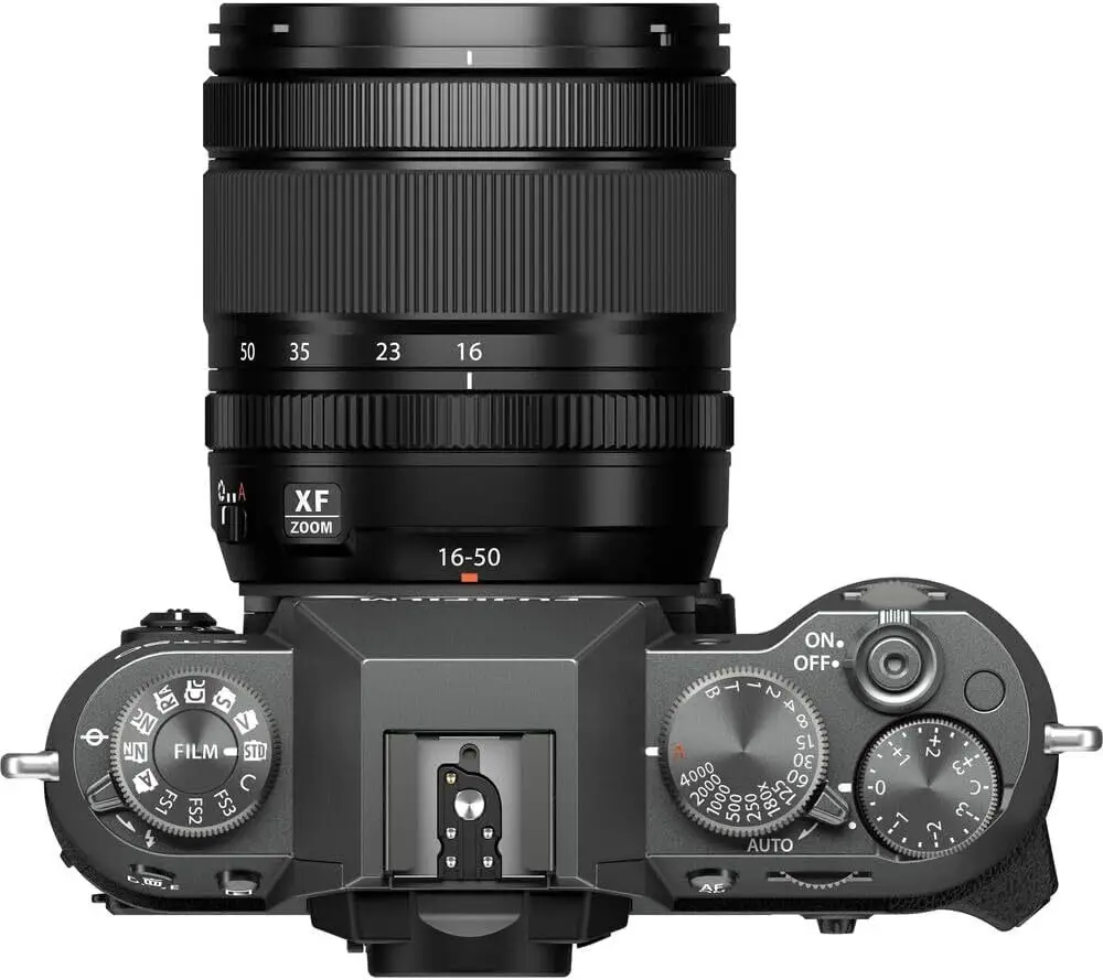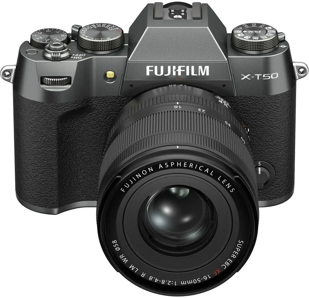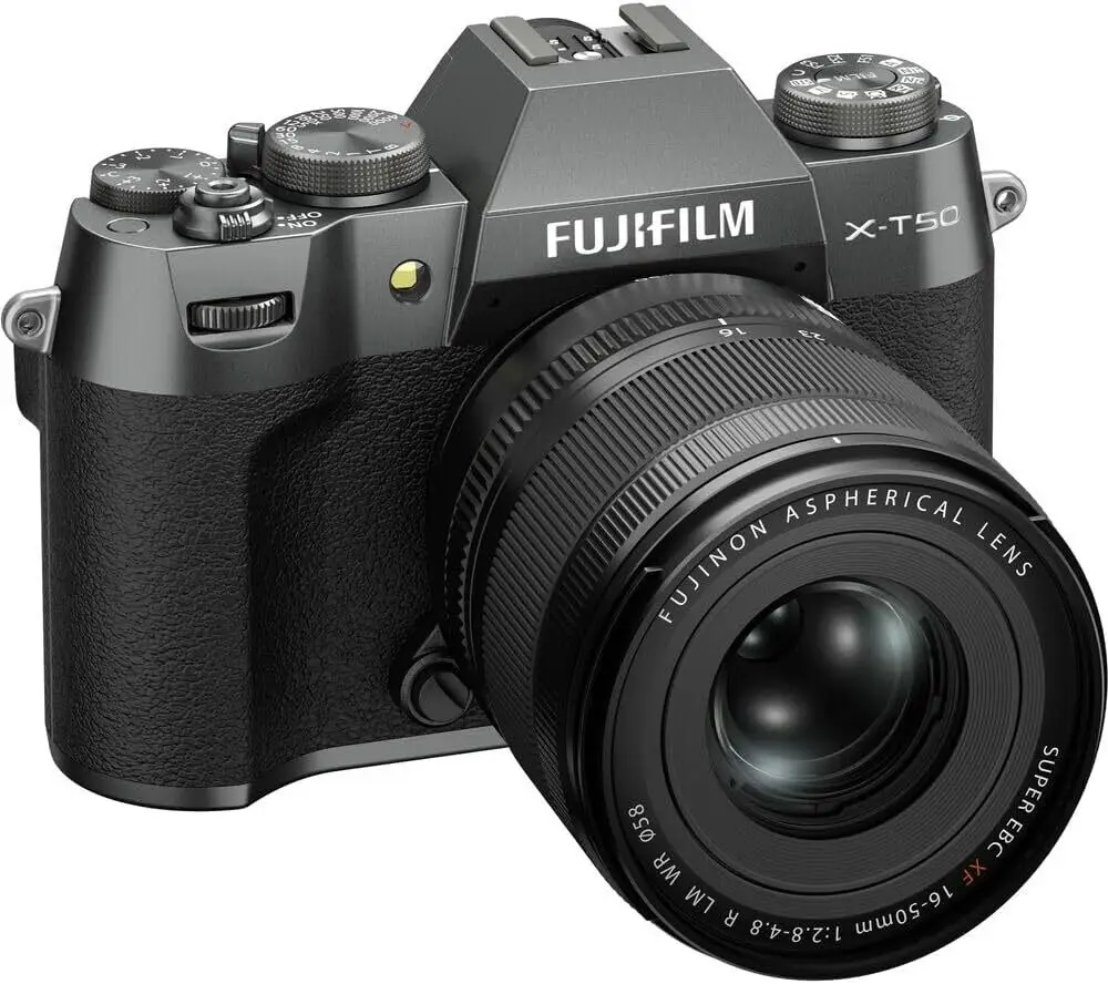 The X-T50 uses a 24.2MP APS-C size CMOS sensor for capturing high-resolution images with good low-light performance.