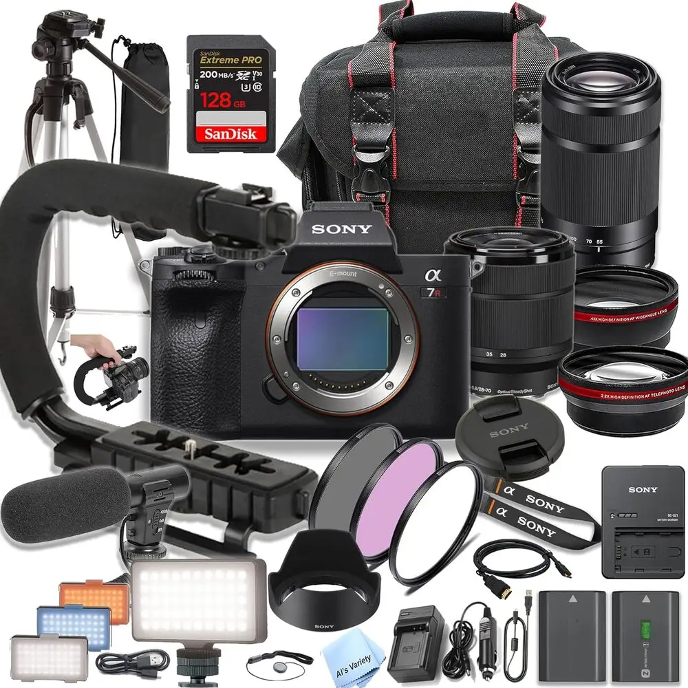 The Sony A7R IV A (model number A) is a high-resolution full-frame mirrorless camera introduced as part of the Sony Alpha series. It features a 61.0 MP Exmor R CMOS sensor, delivering outstanding image quality with excellent dynamic range. The BIONZ X image processor and front-end LSI enable fast processing speeds, supporting a continuous shooting speed of up to 10 fps with autofocus and exposure tracking. The camera incorporates a 567-point phase-detection AF system that covers approximately 74% of the image area, providing precise and fast autofocus performance. It supports 4K UHD video recording with advanced features such as S-Log3 and HLG for professional-grade video workflows. The robust magnesium alloy body is weather-sealed for durability and designed for comfortable operation with an improved multi-selector joystick and high-resolution electronic viewfinder.