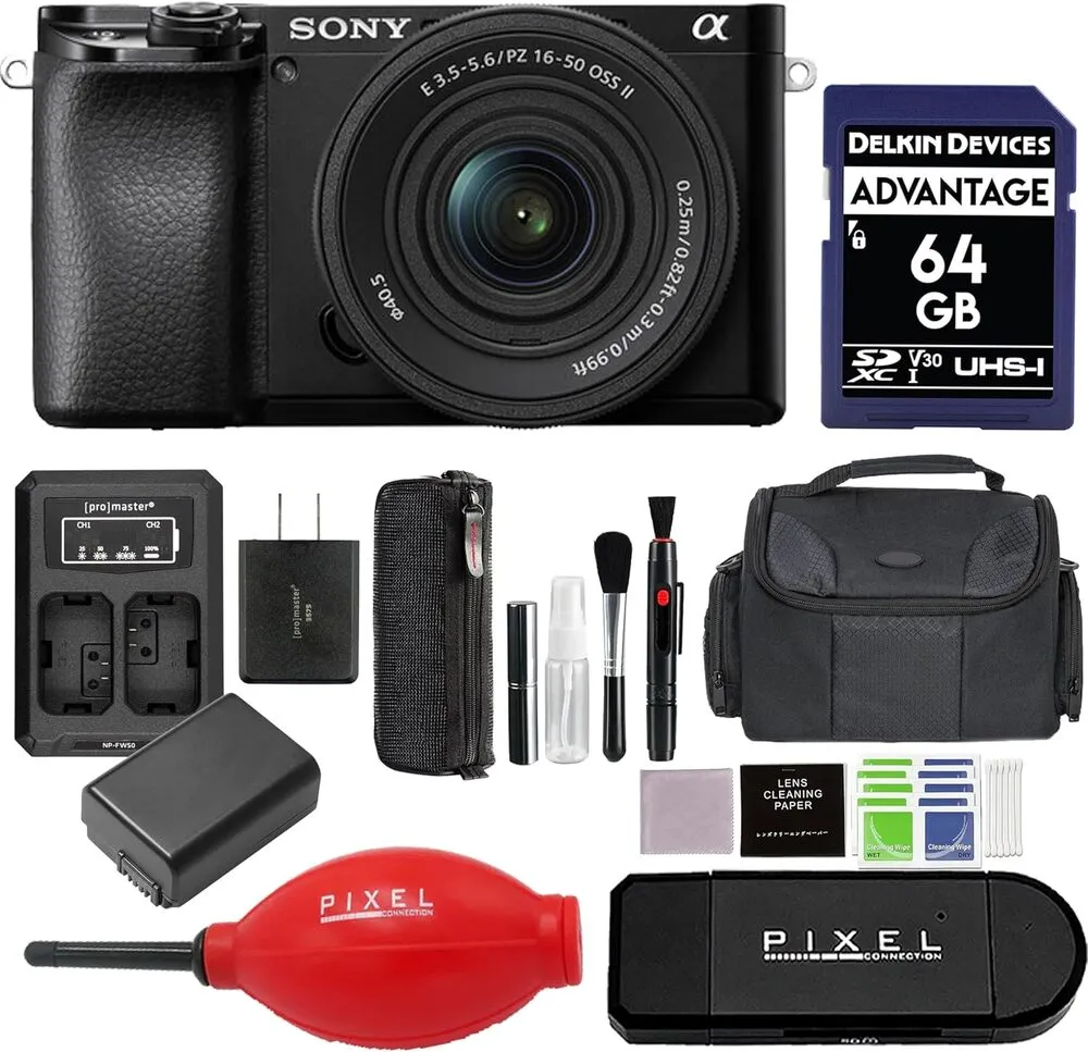 The Sony Alpha 6100KB is a mirrorless camera featuring a 24.2-megapixel APS-C Exmor CMOS sensor paired with the BIONZ X image processor, providing high-resolution imaging and fast data processing.