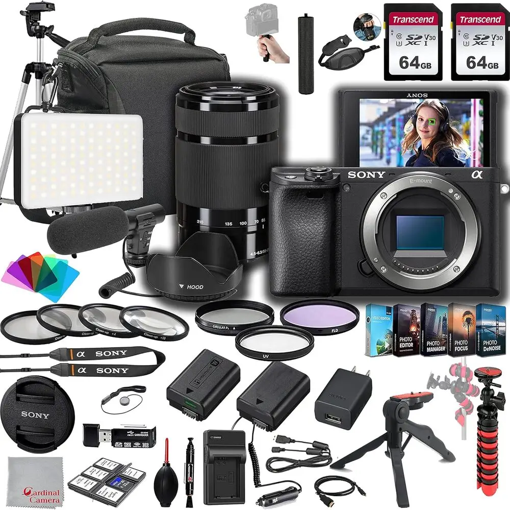 The Sony Alpha 6400 (ILCE-6400/B) is a compact and lightweight mirrorless camera introduced in 2019, featuring a 24.2MP APS-C Exmor CMOS sensor paired with the BIONZ X image processor for high resolution and excellent image quality. It supports Real-time Eye AF and Real-time Tracking with AI-based subject recognition technology, enhancing autofocus precision for stills and video. The camera offers a 425-point phase-detection AF system covering approximately 84% of the frame, enabling fast and accurate focusing performance. It features 4K UHD video recording with full pixel readout and no pixel binning for clear video output, and supports high-speed continuous shooting up to 11 fps. Connectivity options include Wi-Fi and Bluetooth for seamless sharing and remote control. The Alpha 6400 also has a 180-degree tiltable 3.0-inch LCD touchscreen for vlogging and selfies.