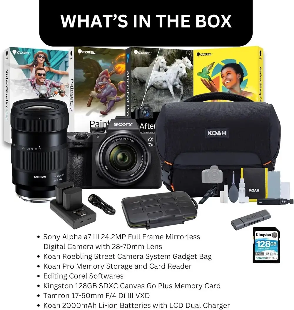 Camera Lens | The main lens included in the bundle is a 28-70mm lens, with an additional 17-50mm lens also provided. The 28-70mm lens is an Sony SEL2870 lens, while the 17-50mm lens is a Tamron 17-50mm F/4 Di III VXD lens. |
