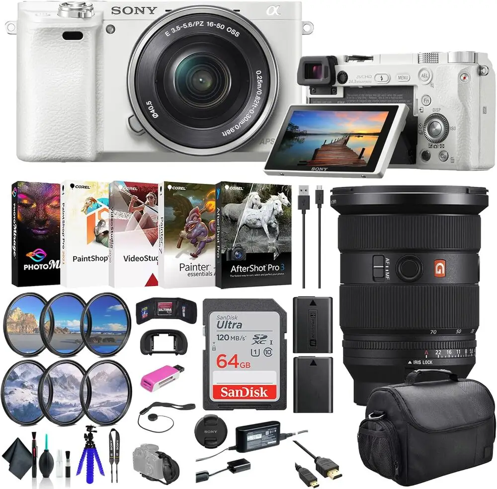 Built-In Media | NP-FW50 Lithium-Ion Rechargeable Battery (1020mAh), Warranty, Eye Piece, Micro USB Cable, Sony Alpha a6000 Mirrorless Digital Camera with 16-50mm Lens (White), Sony 16-50mm f/3.5-5.6 OSS Lens (Silver), Neck Strap, AC Adapter AC-UB10 |