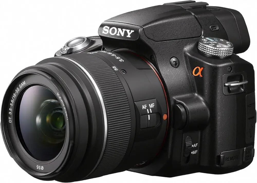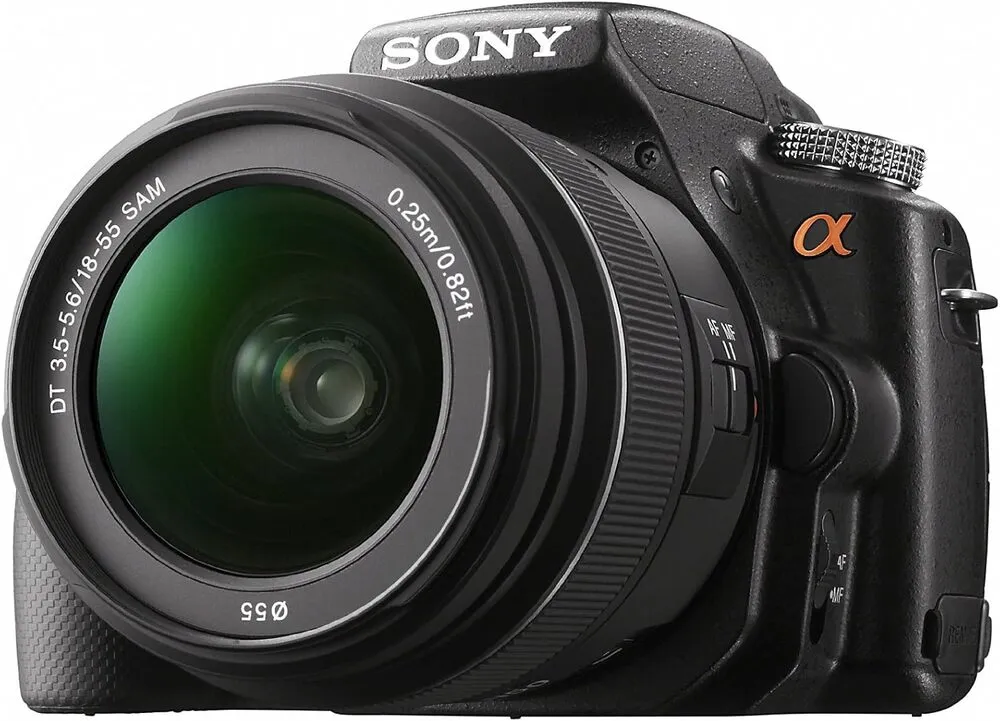 The camera supports Sony A-mount lenses designed for Alpha series cameras.