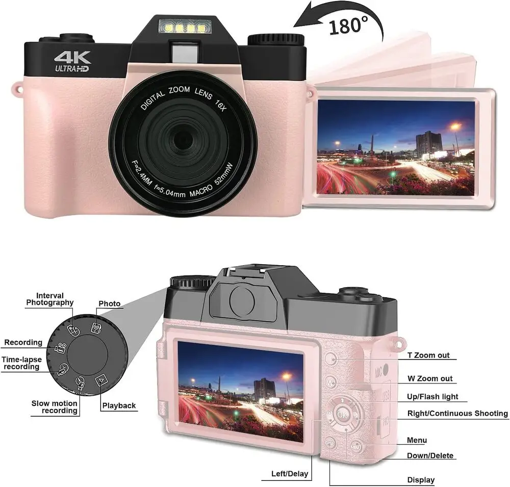 The camera supports 4K UHD video recording at 30 frames per second, Full HD 1080p at 60fps, and HD 720p at 120fps for slow motion.