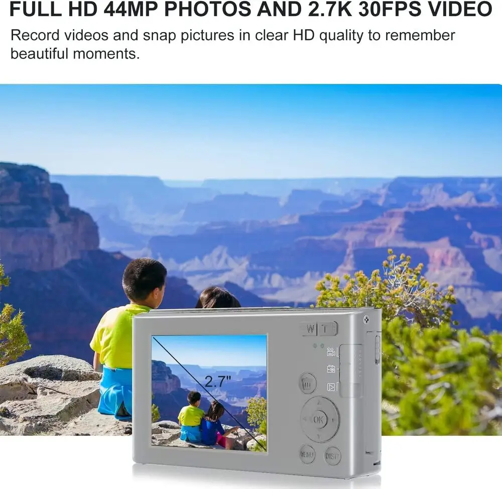 The eDealz 44MP Cam ED44CB is a compact point & shoot digital camera designed for high-resolution imaging. It features a 44-megapixel image sensor that delivers detailed and sharp photos, suitable for both amateur photography and more demanding scenarios. The camera is equipped with an optical zoom lens providing up to 5x magnification, enabling versatile framing and composition. It supports manual and automatic exposure modes, including aperture priority and shutter priority, ensuring flexibility in various lighting conditions. The device uses a 3-inch LCD screen for image preview and menu navigation, and it includes built-in Wi-Fi for easy image sharing and remote control via mobile devices. Power is supplied by a rechargeable lithium-ion battery, providing extended shooting time for on-the-go photography.