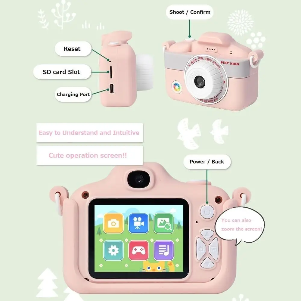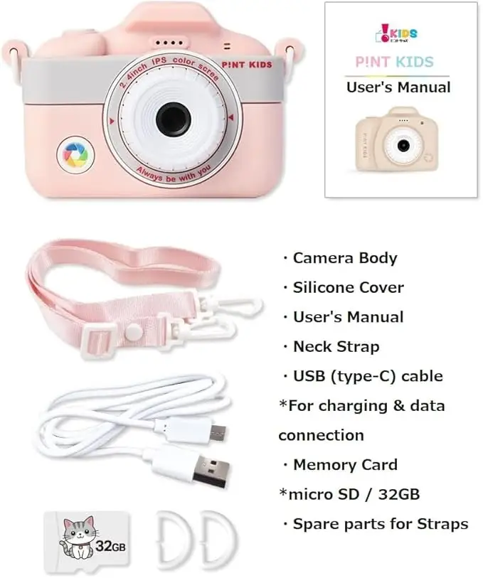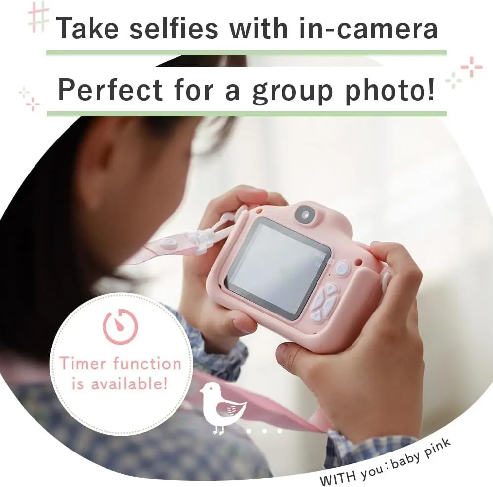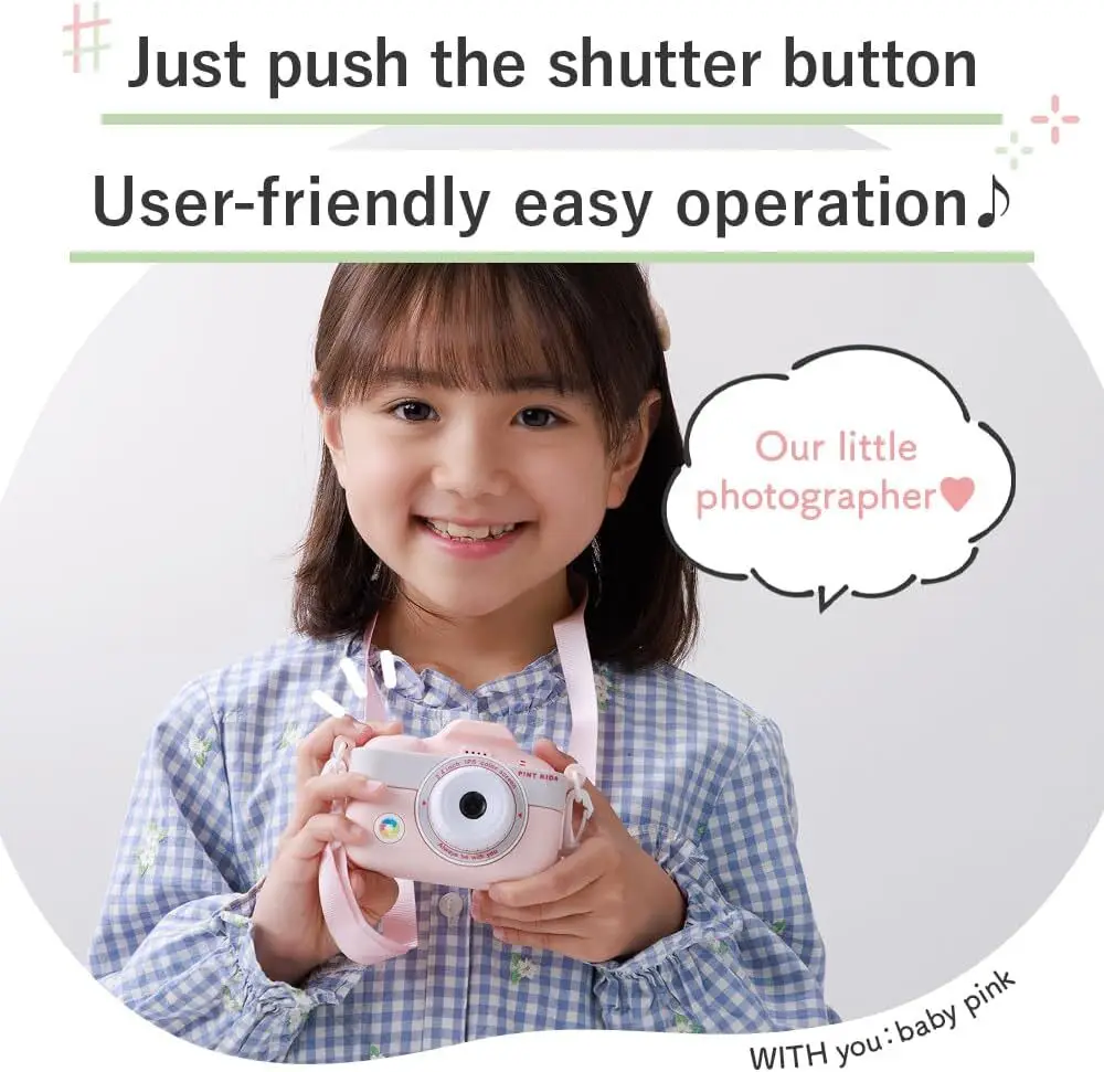 The Felicross P!NT KIDS WITH you ベビーピンク camera from the P!NTO series is designed primarily for children and beginner photographers, featuring a compact, lightweight body tailored for small hands. It incorporates a CCD sensor optimized for basic image capture and has a fixed-focus lens that supports close-range photography. The camera operates with simple point-and-shoot functionality, powered by AA batteries for easy replacement. The design includes bright, colorful aesthetics to appeal to younger users and foster engagement with photography. Basic LCD display supports image review, while onboard storage options include internal memory with support for SD cards.