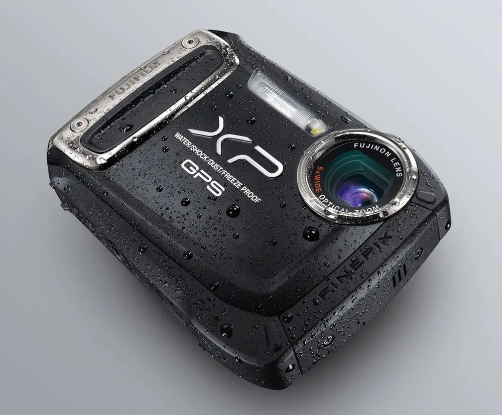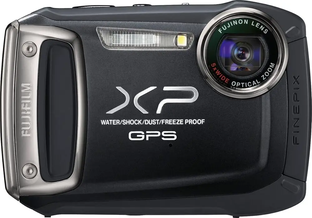 The Fujifilm XP150 Black is a rugged compact digital camera designed for outdoor and underwater use. It features a 14-megapixel 1/2.3" CCD sensor, combined with a Fujinon 5x optical zoom lens, providing focal lengths equivalent to 28-140mm. The camera is waterproof to a depth of 5 meters (16 feet), shockproof from drops up to 1.5 meters, and freezeproof down to -10°C, making it ideal for harsh environments. It supports 720p HD video recording with stereo sound and includes image stabilization technology to reduce blur. The camera employs a 2.7-inch LCD display with approximately 230,000 dots for image review and menu navigation. With ISO sensitivity ranges from 100 to 1600, the XP150 allows for versatility in various lighting conditions.