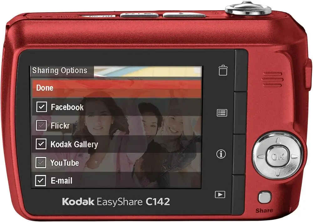 The EasyShare C142 offers a user-friendly interface suitable for novice photographers. Its compact design makes it highly portable and easy to carry. The 3x optical zoom gives added flexibility for framing shots without losing image clarity. Using AA batteries means users can easily find replacements without special chargers. The camera integrates with Kodak's EasyShare software, simplifying photo transfer and sharing. Lightweight construction adds to comfortable handling during extended use.